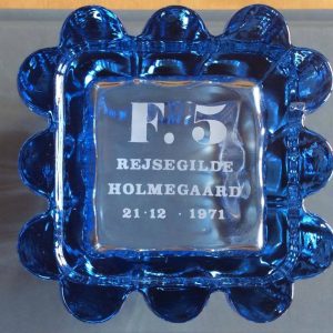 Billedet viser bunden af en vase fra serien Arkade. Den var gave til deltagerne ved rejsegildet af F 5. Den […]