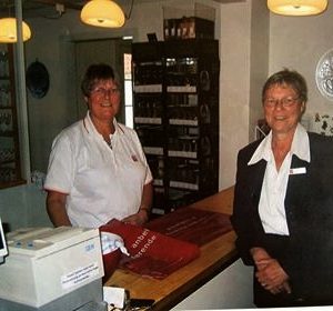Til venstre Ulla som var ekspedient i glasbutikken, stående her med guide Lis Larsen. Billede er fra starten af 1990’erne. Udlånt af Peter […]